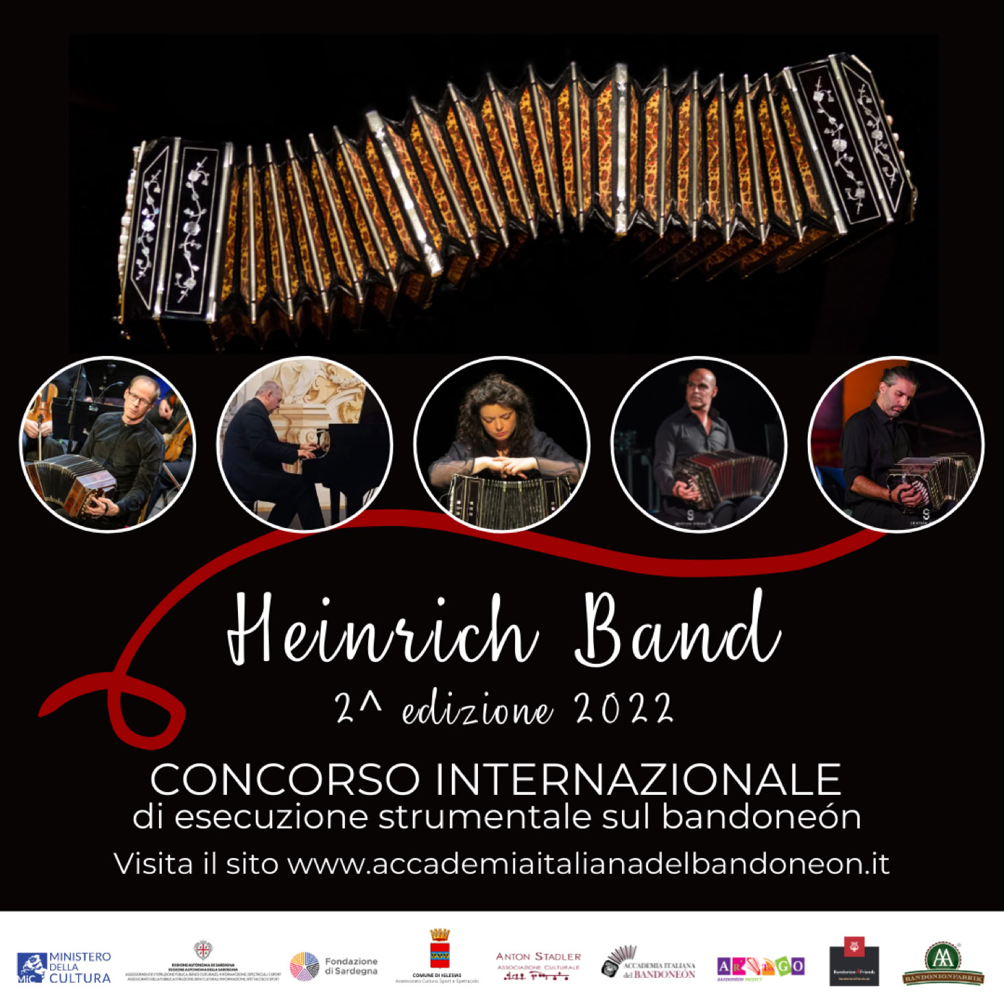 Die Associazione Culturale Anton Stadler und die Accademia Italiana del Bandoneón, unter Mitwirkung der Regione Autonoma della Sardegna - Assessorato Pubblica Istruzione, Beni Culturali, Informazione, Spettacolo e Sport, Comune di Iglesias-Assessorato Cultura, Sport e Spettacolo, Fondazione di Sardegna, MIC Ministero della Cultura und in Zusammenarbeit mit der Association AR’TANGOBandoneon Project in Avignon, kündigen den 2. Internationalen Bandoneonwettbewerb „Heinrich Band“ an.