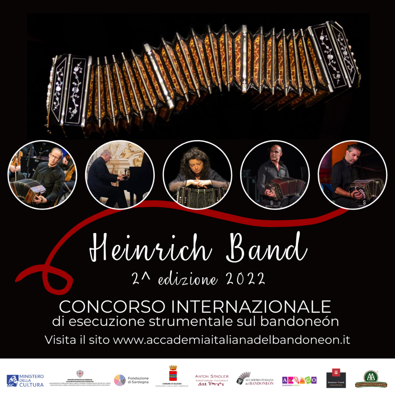 The Associazione Culturale Anton Stadler and the Accademia Italiana del Bandoneón, with the contribution of the RAS Regione Autonoma della Sardegna - Assessorato Pubblica Istruzione, Beni Culturali, Informazione, Spettacolo e Sport, Comune di Iglesias-Assessorato Cultura, Sport e Spettacolo, Fondazione di Sardegna, MIC Ministero della Cultura and in collaboration with the AR'TANGO-Bandoneon Project Association of Avignon, announce the 2nd International Bandoneon Competition “Heinrich Band”.