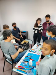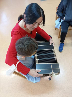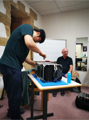 Also through the AA Bandonionfabrik Klingenthal, workshops were offered on these days by our bandoneon maker, Heeju Oh. Here, the children were explained in a playful way how an instrument is made, what it looks like from the inside and which details make up the special sound in the end.